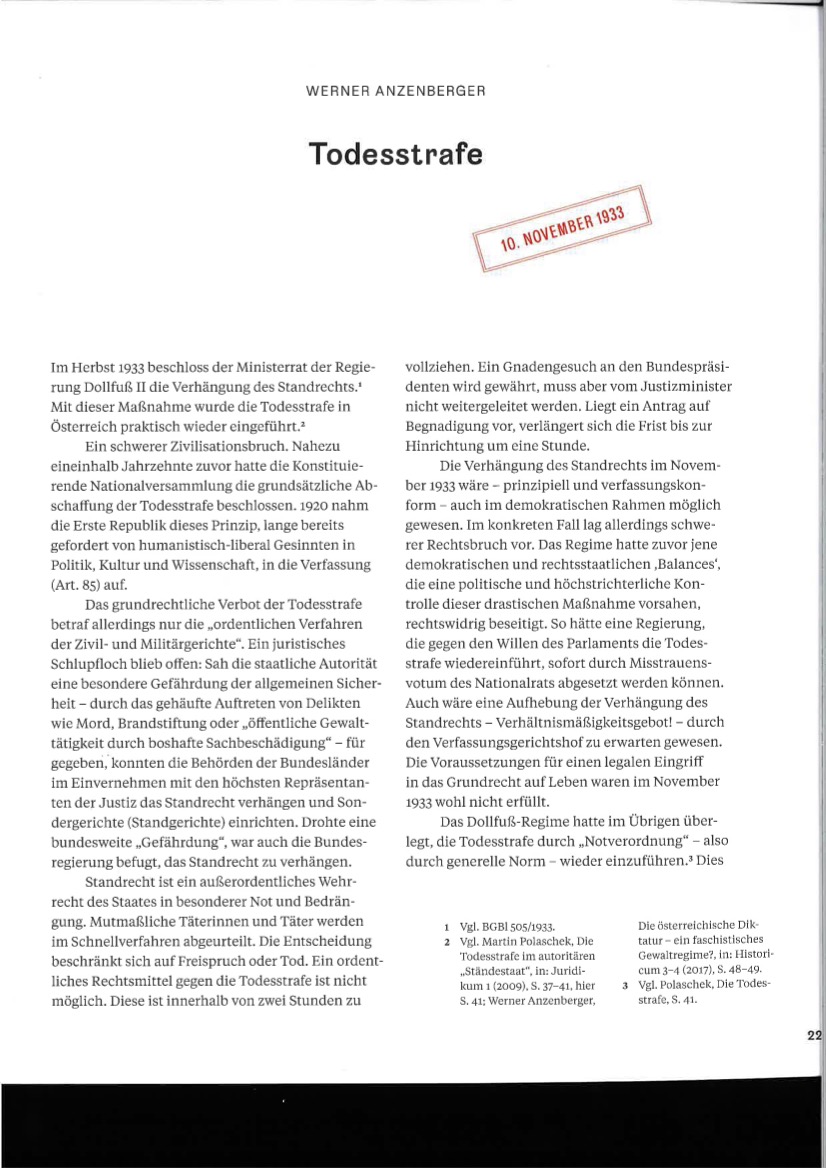 in: Bernhard Hachleitner, Alfred Pfoser, Katharina Prager, Werner Michael Schwarz (Hg.), Die Zerstörung der Demokratie. (Residenz Verlag 2023), 22ff